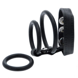 The Universal Gates of Hell are 3 different sized rubber rings that can be snapped into place on the genuine leather harness. With a small, medium and large sized rings, you choose 2 that best fits your needs. Fully adjustable the nickel free non tarnishing snaps allow for comfortable fit and easy removal.