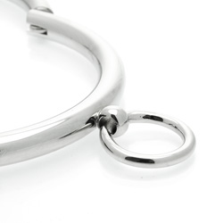 Lock down your slave and make them submit with this sleek, high quality, round chrome collar. The gleaming heavy chrome plated steel provides a nice weight and feel against the skin and the rounded edges bring an element of comfort to the submissive experience. An O ring at the front of the collar allows you to attach a leash, rope, or any other bondage equipment to suit your scene. The included hex key locks this collar down tight so they will feel nothing but cool steel around their throat until you are finished having your way.