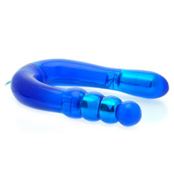 Blue double vibrator, U shaped. Multi speed vibration, controllable with the easy to handle stimulation control.