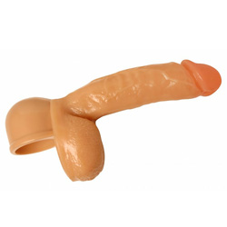Turn your vibrating wand into an insertable pleasure tool. This dildo wand accessory has a full 6.5 inches of shaft to satisfy, and a pair of lifelike balls to bottom out against. Just slip the cup over the top of your favorite massage wand, and let the lusty length satisfy you as the shaft carries the powerful vibrations from your wand right into your pleasure center. Made of slick, rigid PVC for easy maneuverability and insertion, this exciting toy stays nice and hard for exciting penetration whenever you want it.