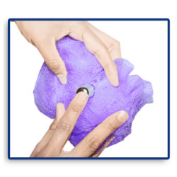 DISCREET design leave it hanging in the shower or bath. Single speed push button bullet housed in sleeve in middle of sponge. Vibration carries throughout the material. Great for sensual massage and or masturbation