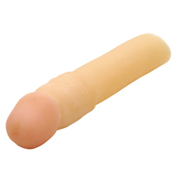 Extends the penis 3 inches and enlarges the girth Designed for wear during intercourse this transformer will turn any penis into a. Supercock! Enjoy the lifelike, fleshy feel of Cyberskin material. Made from a revolutionary new compound for the softest skin ever. Snug fitting extension slips on easily, just like a condom. Sleeve can be trimmed for a custom fit if necessary. Comes with 1 oz. bottle of Climax lube PLUS bottle of Renew talc to keep it feeling velvety soft.