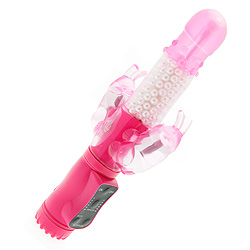 The Jessica Rabbit Duo is two bunnies in one for double the fun. The shaft is filled with an abundance of squirmy pearls which are going to feel amazing inside as they rotate and move around. You get 6 rotating speeds so you really can massage yourself into submission. Two vibrating bunnies either side of the shaft, give you simultaneous clitoral stimulation and anal and each has six functions to enjoy. Waterproof too for fun in the bath or shower. Enjoy 36 amazing functions for simultaneous vaginal, clitoral and anal stimulation.