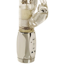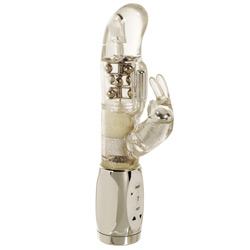 G spot rabbit with beads and 3 levels of vibration, A clitoral vibrator with 7 levels of vibration pulsation and escalation. Hot button to send the abbit in to a random pattern, Waterproof led lights and mini g bullet on the shaft.