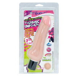 Have no fear. The inch Orgasmic Enforcer is here. This 10 Technobeat Funtion, waterproof vibe is made from the sensually soft, Loveclone RX material Phthalate free and amazingly realistic What really sets The Orgasmic Enforcer apart from other vibes is the fascinating, yet sensual love sack at the base. Just like a pair of real balls, this sack adds extra stimulation to your love play.
