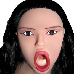 Lifesize inflatable love doll with removable CyberSkin pussy and ass Open ended, ribbed love tunnel Realistic, 3D face with soft lips and a deep throat mouth Lifelike eyes and extra long hair Perky breasts with soft, erect nipples Waterproof Phthalate and latex free CyberSkin. Includes a repair kit