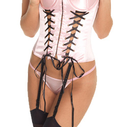 Home - Sexy Clothes - Pink Basque, String and Stockings